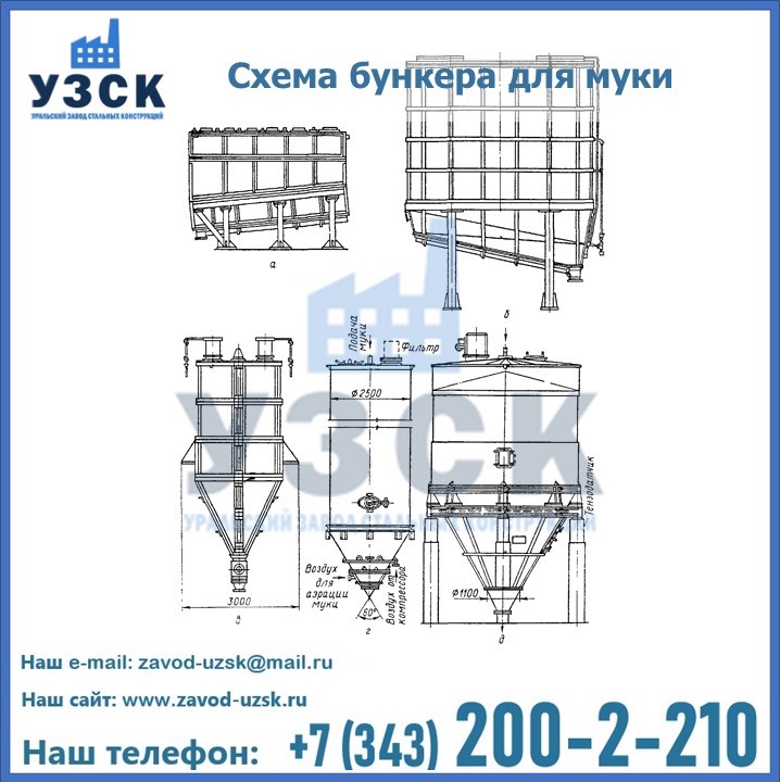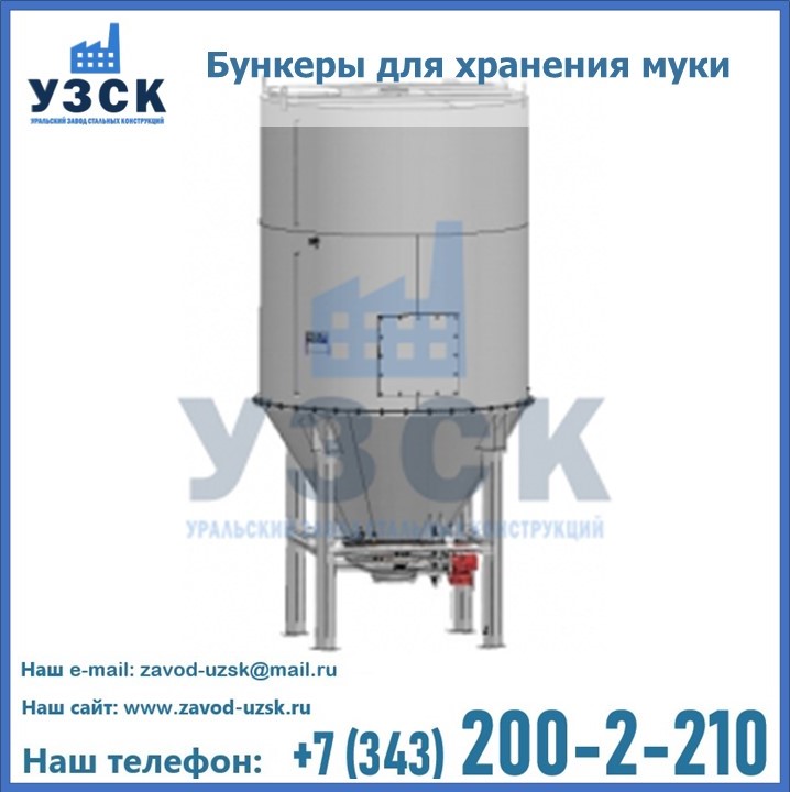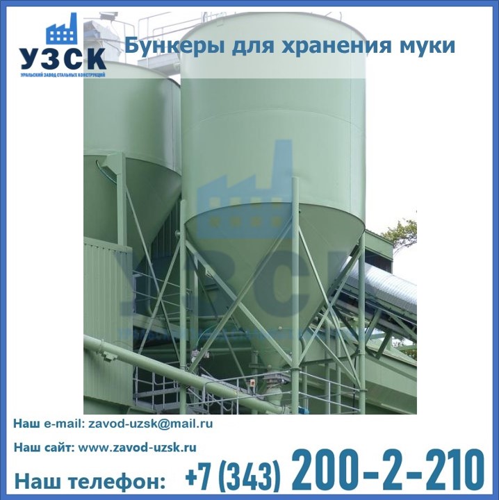 Завод «УЗСК» в Москве проектирует, производит и поставляет целевое оборудование, в том числе, бункеры для хранения муки и прочих сыпучих материалов.