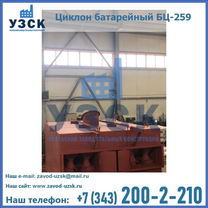 Приобрести качественное оборудование, в том числе, циклоны БЦ-259, можно в компании УЗСК в Москве. Мы предлагаем долговечную и надежную продукцию по приемлемой цене. Заказать и купить циклоны или другие изделия высокого качества можно через сайт Уральского Завода Стальных Конструкций, или позвонив по указанному в разделе «Контакты» телефону.