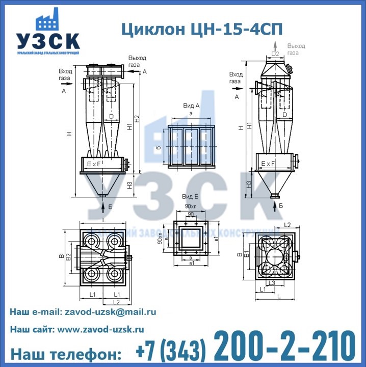 Завод «УЗСК» в Москве предлагает большой выбор циклонов ЦН-15-900×4СП и прочих устройств, полностью укомплектованных и готовых к эксплуатации. Мы гарантируем соответствие оборудования всем требованиям ГОСТ и ТУ, износостойкость и высокую производительность предлагаемого оборудования. Уральский Завод Стальных Конструкций изготавливает и продает надежное, эффективное и производительное оборудование, имеющее длительную гарантию и большой эксплуатационный ресурс. Если требуется изготовить циклон нестандартных размеров, то такой вариант выполнения заказа тоже предусмотрен, так как предприятие имеет собственные производственные площади и надежных поставщиков. На все поставляемое или производимое оборудование имеются чертежи и прочая техническая документация. Заказать и купить циклоны или прочее оборудование высокого качества и по доступной цене можно через наш сайт или по указанному в разделе «Контакты» телефону.