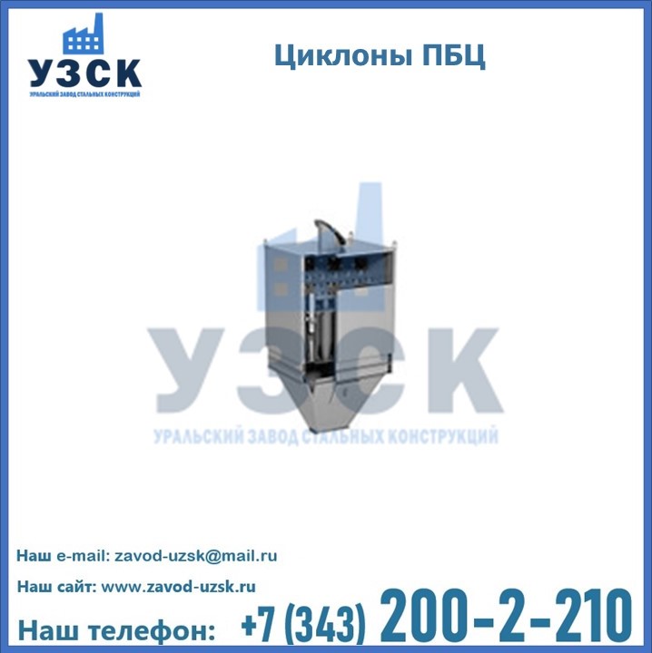 Завод «УЗСК» в Москве предлагает приобрести циклоны ПБЦ и прочие устройства, полностью укомплектованные и готовые к эксплуатации. Мы гарантируем соответствие оборудования всем требованиям ГОСТ и ТУ, износостойкость и высокую производительность предлагаемого оборудования. Уральский Завод Стальных Конструкций изготавливает и продает надежное, эффективное и производительное оборудование, имеющее длительную гарантию и большой эксплуатационный ресурс. Если требуется изготовить циклон нестандартных размеров, то такой вариант выполнения заказа тоже предусмотрен, так как предприятие имеет собственные производственные площади и надежных поставщиков. На все поставляемое или производимое оборудование имеются чертежи и прочая техническая документация. Заказать и купить циклоны или прочее оборудование высокого качества и по доступной цене можно через наш сайт или по указанному в разделе «Контакты» телефону.