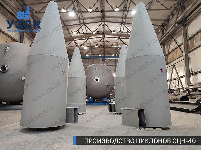 Циклоны СЦН-40 являются очистительной системой, обладающей более качественными показателями выноса вредных примесей в сравнении со всеми другими моделями циклонов, при этом энергозатраты у них всех одинаковы. Уральский завод стальных конструкций в Москве занимается продажей готовых циклонов СЦН-40, а также проектированием, сервисным обслуживанием пылеуловителей и осуществляет монтажные работы циклонов. Монтаж аппаратов ЦСП-40 осуществляется на стороне, с которой происходит всасывание воздуха. Показатели массы устройства напрямую зависят от его производительности.